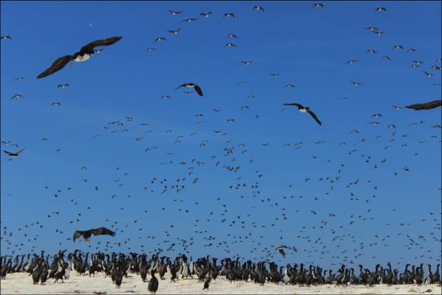 Por fin un grupo decidió la ruta que debía seguir y lo que ya creía maravilloso me termino por quitar el aliento. Cientos de miles de aves volando en bandada por encima nuestro como si el cielo se hubiera estrellado de día. En ese momento no había preocupaciones, pues lo peor que podía pasar era que nos cagaran encima. Y ese era un precio que podía aceptar por el espectáculo que nos estaban dando.