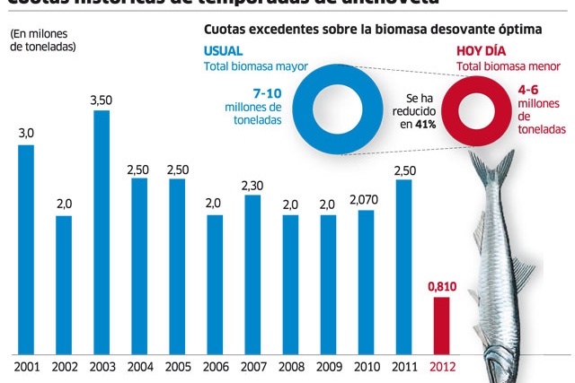 El 2012 no fue el mejor año para conseguir alimento si eres un depredador en la Corriente de Humboldt. Incluso, la pesquerÃa de anchoveta tuvo su cuota más baja asignada en los últimos 10 años! Esto ya de por sà es un gran indicador.